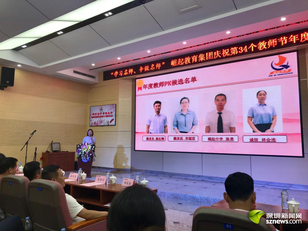 大會以“學(xué)習(xí)名師 爭做名師”為主題,活動伊始,來自崛起實驗中學(xué)的陳勇老師、翻身實驗學(xué)校(東校區(qū))的楊壯峰老師、翻身實驗學(xué)校(西校區(qū))的李麗君老師和誠信實驗學(xué)校的林會連老師進(jìn)行“年度教師PK”,通過現(xiàn)場演講和選題問答,最終崛起實驗中學(xué)的陳勇老師獲得“崛起教育集團(tuán)2018年度教師”榮譽(yù)稱號,其他三位老師獲“崛起教育集團(tuán)2018年度教師”提名獎。