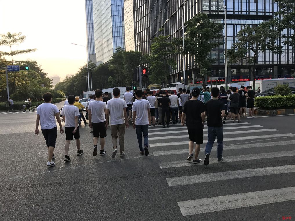 科苑路科興科學(xué)園段,行人等不及都闖紅燈過(guò)馬路