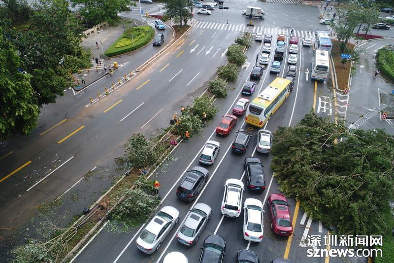 雖然經(jīng)過(guò)很多人的連夜“修復(fù)”,但此次風(fēng)災(zāi)35年一遇,造成的影響超出預(yù)期,仍有許多道路被倒伏的樹(shù)木阻斷,但樂(lè)觀的深圳人,在“搭把手”和相互照應(yīng)中,迎來(lái)了這全新的一天。