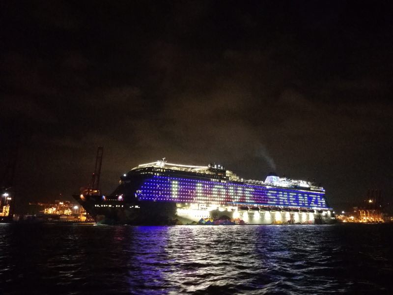 9月18日01:30,在海巡船警戒護(hù)航下,“世界夢(mèng)”號(hào)安全離港。(記者 易東 通訊員 宋威)