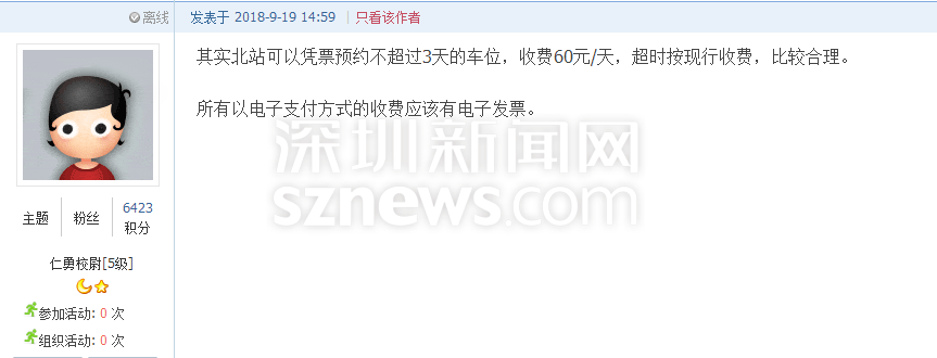 深圳新聞網9月21日訊(記者 施冰冰)“北站停車三天收費412元,這不是暴利嘛?!”近日,深圳一網友發(fā)帖吐槽深圳北站的收費標準,他認為深圳市中心的商業(yè)寫字樓一天封頂也不過60元,高鐵站社會停車場作為老百姓的公共交通基礎設施,憑什么比市中心的商業(yè)寫字樓還貴2倍多?(帖文:《 北站社會停車場作為老白姓的公共交通基礎設施,憑什么比市中心的商業(yè)寫字樓還貴2倍多》)