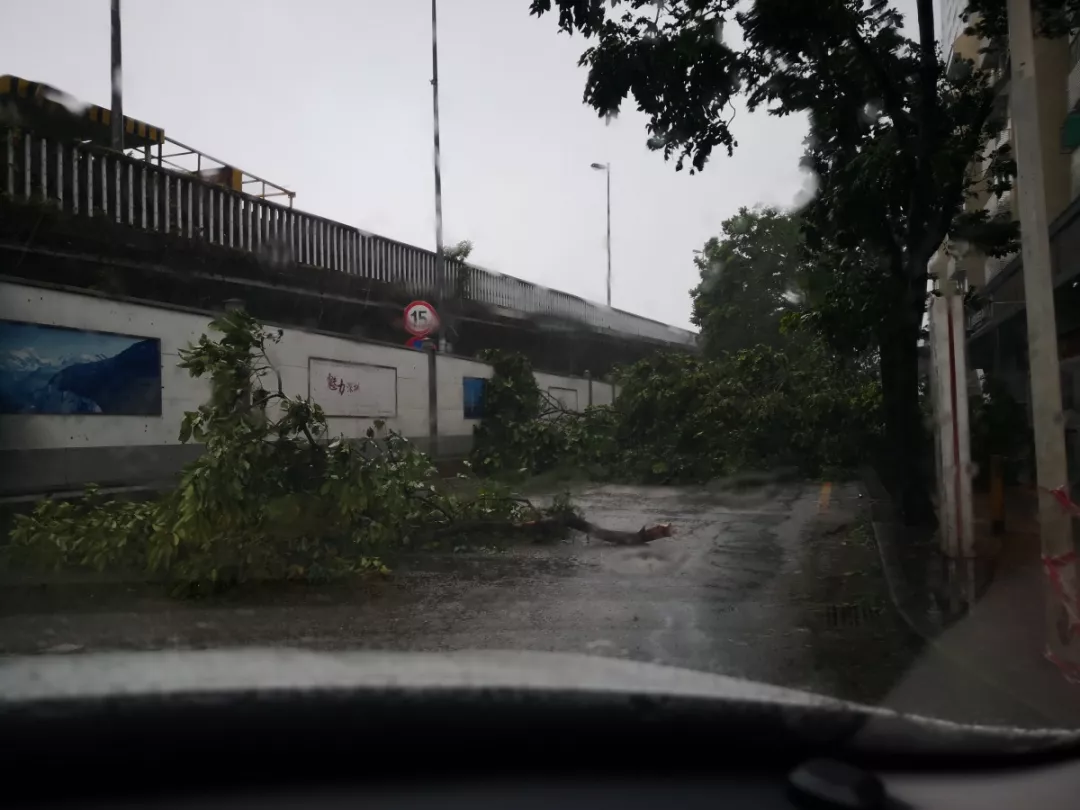 9月16日臺風(fēng)侵襲深圳,下午1點半左右,南園所徐濤副所長帶領(lǐng)民警在街面查看災(zāi)情,路面滿地狼藉,被風(fēng)刮斷的樹木橫七豎八,擋住許多車道。