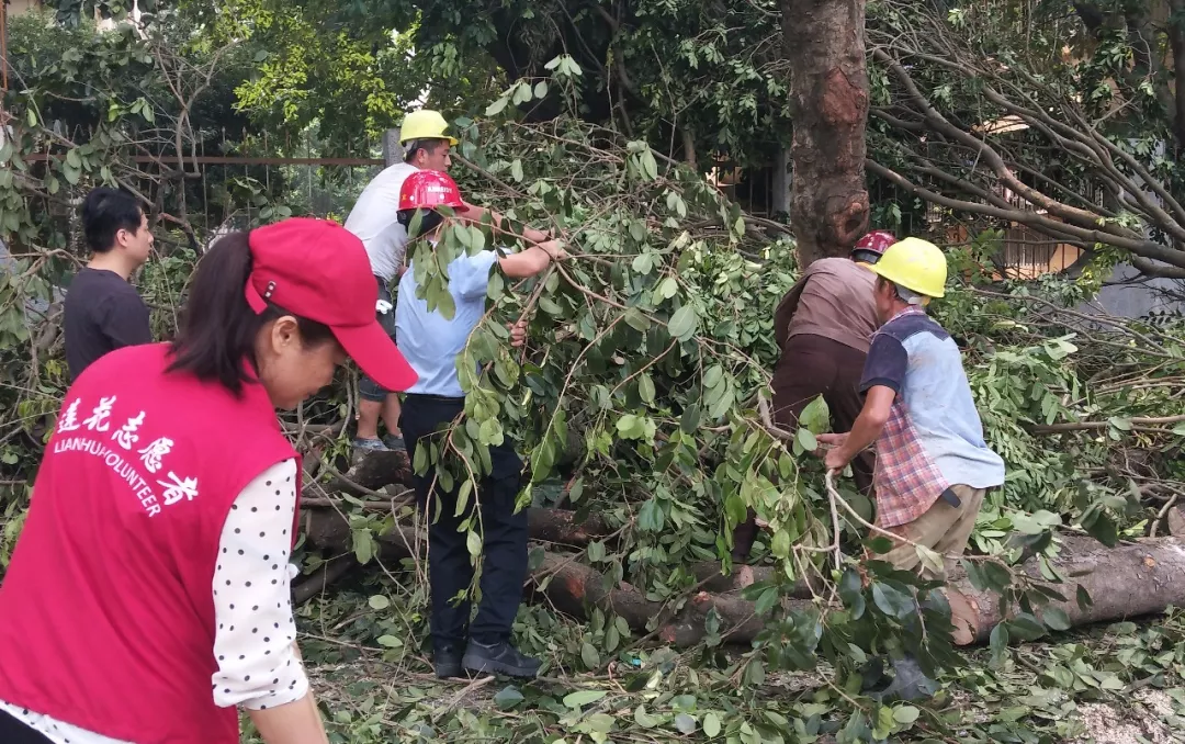 附近的某施工單位受到此次臺(tái)風(fēng)影響也很大,但是在救援過程中提供了力所能及的幫助。比如現(xiàn)場(chǎng)的吊車、運(yùn)輸車等施工工具和建筑工地的一線工作人員,對(duì)于道路清理作業(yè)非常專業(yè)有效。連帶著附近的物業(yè)公司、安保公司、社區(qū)工作站等都紛紛加入?!熬κ怯邢薜?,但民力無窮。”唐順華說,“這次的災(zāi)后修復(fù)工作,市民積極熱心地主動(dòng)作為、主動(dòng)參與也給我極大鼓舞。”