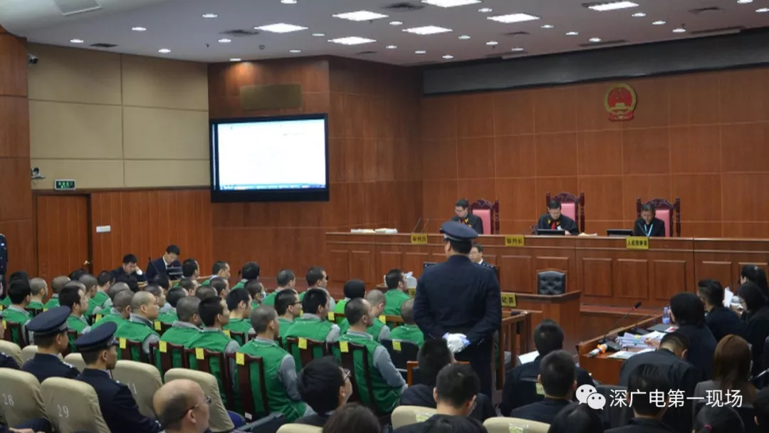 本案庭審時(shí)間共持續(xù)4天,其中僅訊問(wèn)、舉證即持續(xù)2天時(shí)間。公訴機(jī)關(guān)提起的起訴書(shū)達(dá)50頁(yè),隨案移送案卷共計(jì)48卷,撰寫(xiě)審查報(bào)告共計(jì)185頁(yè)11萬(wàn)余字,并制作多份表格數(shù)據(jù)。法院一審判決判決書(shū)達(dá)119頁(yè)。在庭審現(xiàn)場(chǎng)共有50余名辯護(hù)律師出庭辯護(hù),多名被告人家屬到場(chǎng)旁聽(tīng)。因?yàn)槿藬?shù)眾多,深圳市福田區(qū)人民法院將該院最大的第一審判庭座椅進(jìn)行了拆除改造,才達(dá)到開(kāi)庭條件。