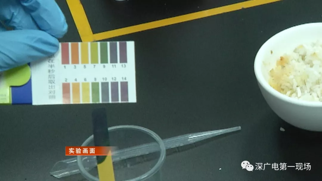 在專業(yè)人士的建議下,記者來到了市監(jiān)快速檢驗中心進(jìn)行酸堿度測試。根據(jù)何先生提供的親身感受和化學(xué)品在餐飲洗滌的使用情況,專業(yè)人士指出白色晶體在PH值大于10的情況下,就很可能是無毒但是具有強腐蝕性的燒堿,而燒堿吸入二氧化碳后就是人們俗稱的小蘇打。
