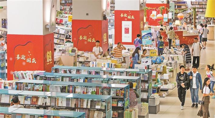 深圳書城中心城隨處可見慶祝國(guó)慶的主題裝飾。