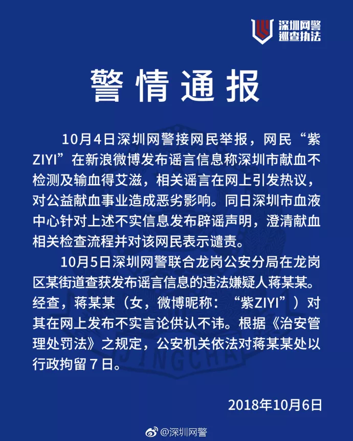 6日17:19,@深圳網(wǎng)警發(fā)布警情通報(bào):