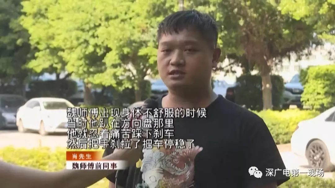 蕭先生是魏師傅的前同事,當(dāng)天正好乘車出行,他親歷了魏師傅突發(fā)狀況的整個(gè)經(jīng)過。他告訴記者,魏師傅忍著巨大的痛苦,將車子停下之后,馬上向他求助。