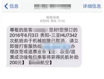 還好短信里寫著"改簽不收取費用""補(bǔ)助200元"