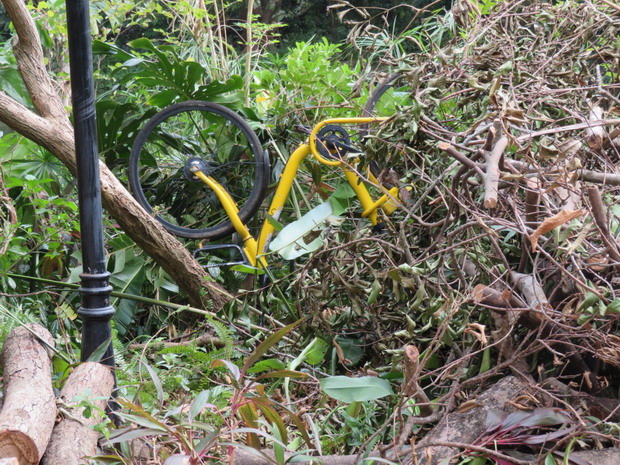與廢棄樹枝堆成一團的共享單車 深圳論壇網(wǎng)友“noelam”攝