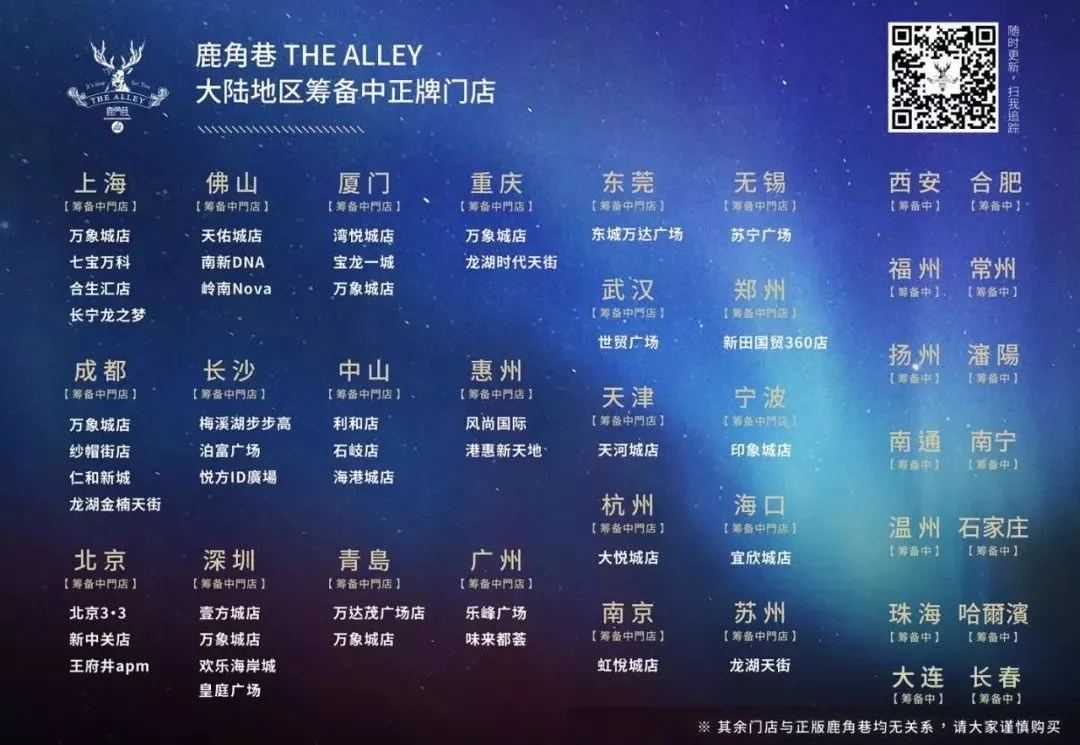 據(jù)大陸地區(qū)品牌總經(jīng)理譚力說:如果你在街邊小攤看到鹿角巷,那肯定是假的。因為我們只入駐大型商場。