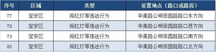 深圳新聞網11月5日訊(記者 何暢)據“深圳交警權威發(fā)布”微信公眾號消息,近期深圳交警公布啟用115套交通技術監(jiān)控設備,重點整治違法停車、沖紅燈、超速、逆行、不按車道方向行駛、占用公交車道等多種違法行為。其中福田區(qū)56套,羅湖區(qū)20套,寶安區(qū)4套,光明區(qū)35套。
