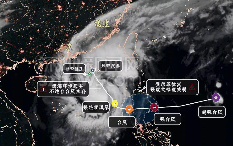 深圳市氣象局發(fā)布的玉兔從超強(qiáng)臺風(fēng)到減弱為熱帶低壓圖