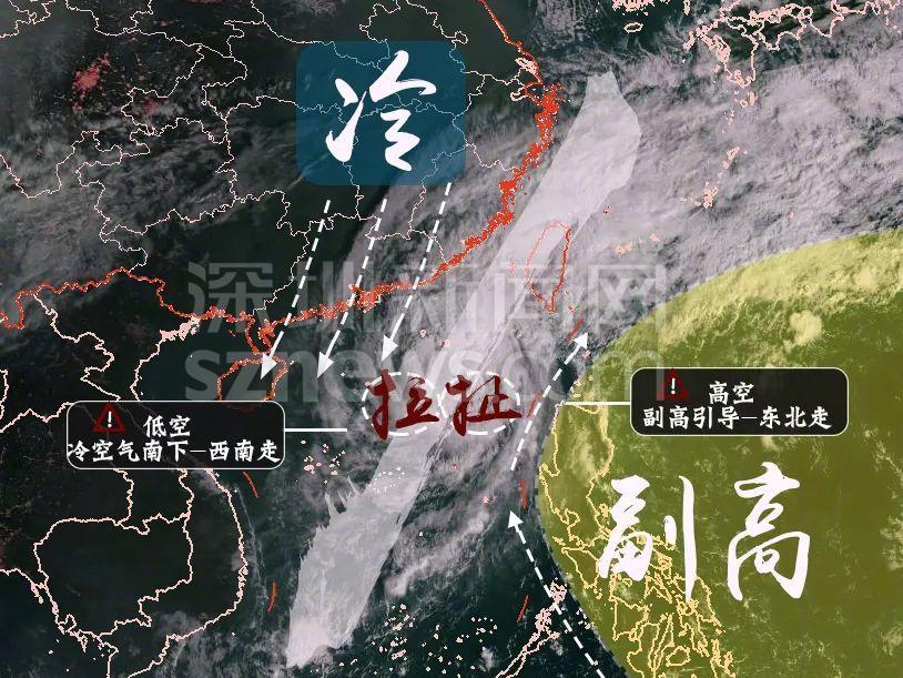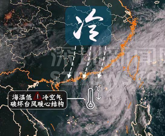 深圳市氣象局發(fā)布的冷空氣和海溫破壞臺風(fēng)結(jié)構(gòu)示意圖