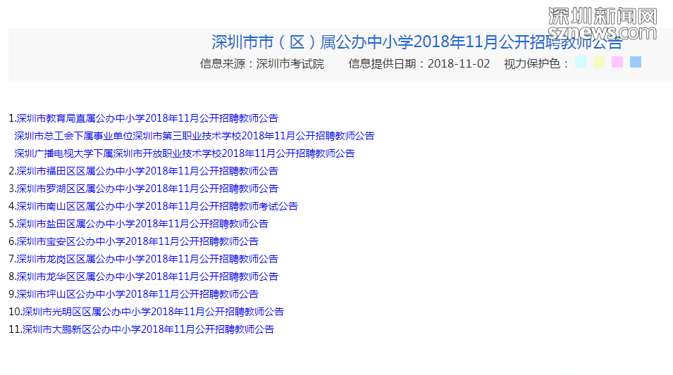 深圳市市(區(qū))屬公辦中小學(xué)2018年11月公開招聘教師公告
