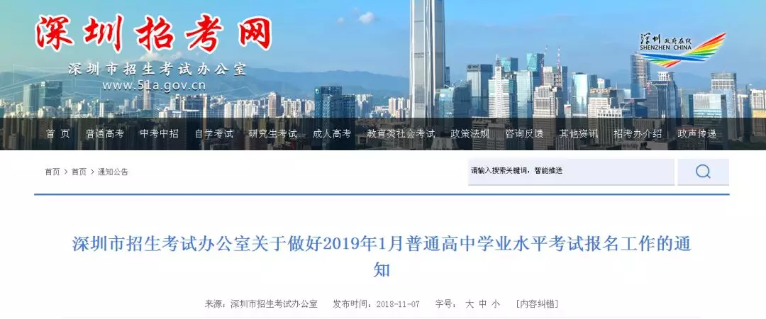 深圳新聞網11月12日訊(記者 劉婷)近日,深圳市招生考試辦公室發(fā)布了《深圳市招生考試辦公室關于做好2019年1月普通高中學業(yè)水平考試報名工作的通知》,明確要求:報名時間為2018年11月12日至17日,其中12日至14日為網上預報名時間,15日至17日為報名點現場報名確認時間。