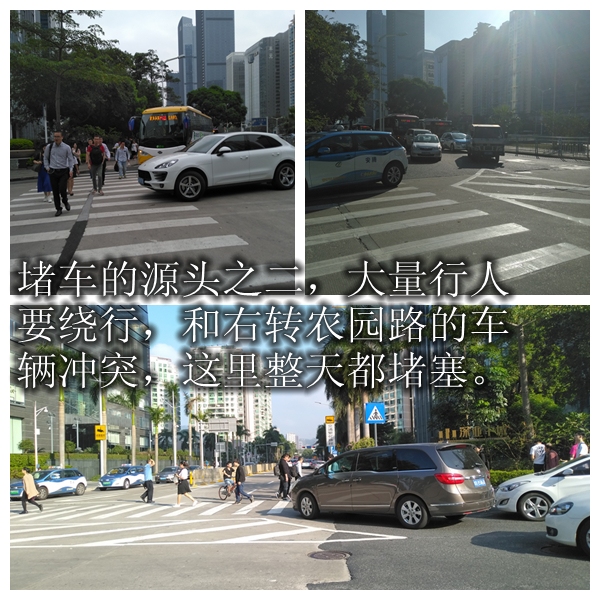 “每天早上都堵在這里,然后眼巴巴看著自己‘被遲到’。”網(wǎng)友“深圳大胡子”在帖文的開(kāi)頭就吐槽了車公廟路段總是堵車的情況。他認(rèn)為,大面積的車道被封閉導(dǎo)致私家車、公交車、行人爭(zhēng)道通行,是造成該路段嚴(yán)重?fù)矶碌闹饕颉?/p>