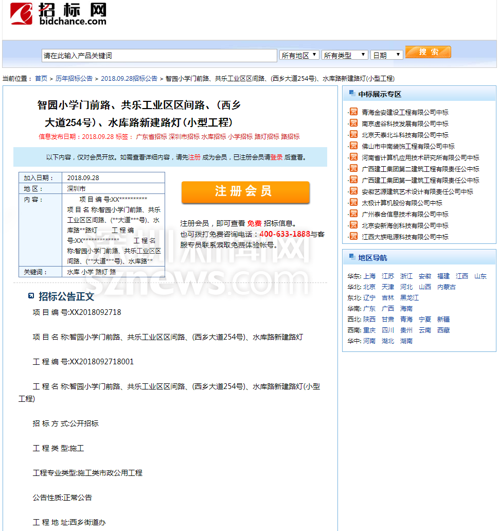 針對網(wǎng)友反映的情況,記者查閱相關(guān)資料發(fā)現(xiàn),寶安智園小學(xué)門前的施工工程于2018年9月28日公開招標(biāo)。