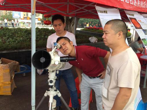 市民朋友在觀(guān)察天文望遠(yuǎn)鏡