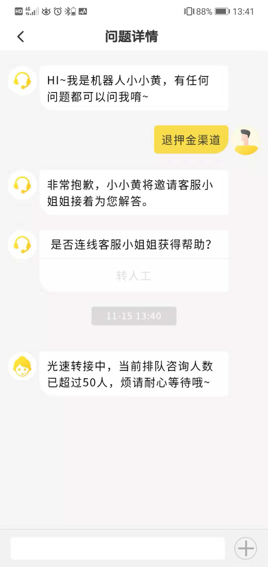深圳特區(qū)報2018年11月16日訊“點人工服務(wù)永遠顯示前面排隊超過50人,客服電話也打不通?!苯?有市民爆料稱,在ofo平臺退押金實屬不易。