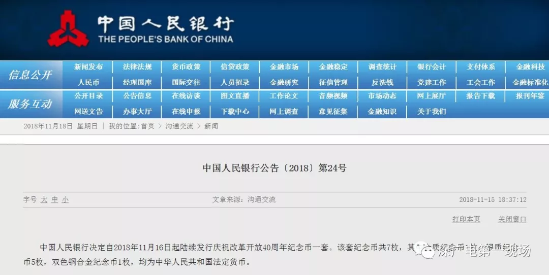中國人民銀行決定自2018年11月16日起陸續(xù)發(fā)行慶祝改革開放40周年紀(jì)念幣一套。該套紀(jì)念幣共7枚,其中金質(zhì)紀(jì)念幣1枚,銀質(zhì)紀(jì)念幣5枚,雙色銅合金紀(jì)念幣1枚,均為中華人民共和國法定貨幣。面額分別分100元、50元、10元。