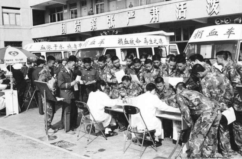 深圳有三輛伊維柯捐血車,3月1日一起開到部隊,官兵爭相獻血。 余海蓉 攝