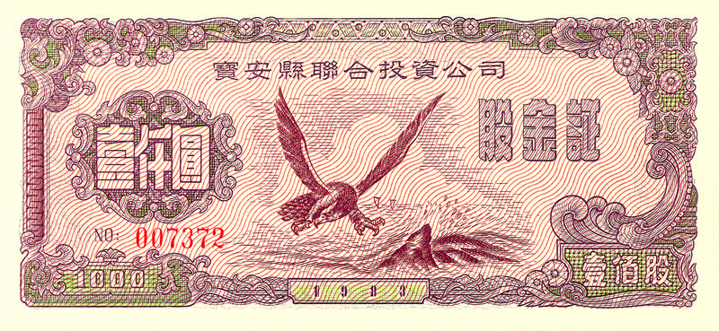 1983年,中國(guó)寶安集團(tuán)發(fā)行的新中國(guó)第一張股票。