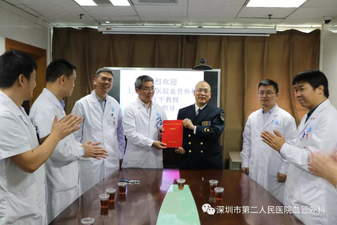 2018年11月30日,中國(guó)人民解放軍海軍軍醫(yī)大學(xué)附屬長(zhǎng)海醫(yī)院血管外科、心臟瓣膜疾病微創(chuàng)診治中心主任,上海市血管系統(tǒng)疾病臨床醫(yī)學(xué)中心主任,全軍血管外科研究所所長(zhǎng),中國(guó)醫(yī)師協(xié)會(huì)腔內(nèi)血管學(xué)分會(huì)(二級(jí))主任委員,國(guó)際知名血管外科專(zhuān)家景在平教授,來(lái)到深圳市第二人民醫(yī)院(深圳大學(xué)第一附屬醫(yī)院)(以下簡(jiǎn)稱(chēng)“我院”)進(jìn)行座談、臨床查房、會(huì)診以及向全市住院醫(yī)師規(guī)培學(xué)員、教師與基地管理人員進(jìn)行專(zhuān)題學(xué)術(shù)講座。