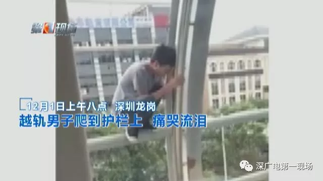 市民拍攝的畫面顯示,男子一度爬到護欄上,并蹲靠著護欄痛哭。