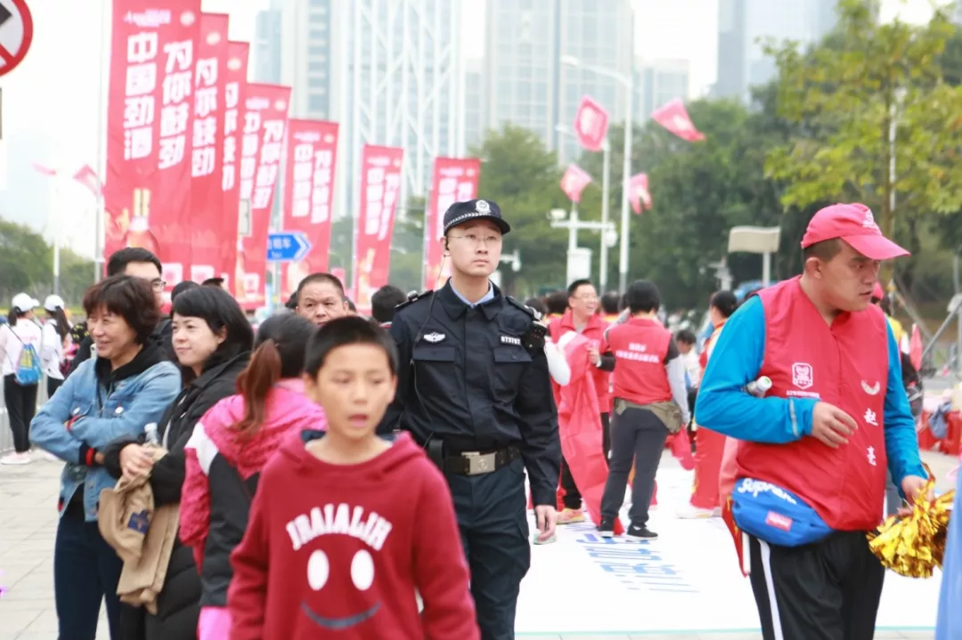 為全力做好此次馬拉松安保工作,福田警方提前謀劃、科學(xué)部署,承擔(dān)全程、半程馬拉松起點(diǎn)及6.2公里賽道的安全保衛(wèi),共出動(dòng)警力1972人,啟用20套4G現(xiàn)場(chǎng)圖傳 “千里眼”,20套視頻識(shí)別探頭“守點(diǎn)”;警力實(shí)時(shí)定位系統(tǒng)、118個(gè)高低空視頻預(yù)案“守線”;71套現(xiàn)場(chǎng)視頻執(zhí)法記錄儀。從凌晨4點(diǎn)到下午2點(diǎn),用長(zhǎng)達(dá)10個(gè)小時(shí)的安?!榜R拉松”為賽事的順利開展保駕護(hù)航。