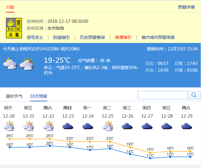 記者從深圳市氣象局了解到,19日深圳市空氣質(zhì)量優(yōu)-良;以多云天氣為主;氣溫在19-25℃;偏東風2-3級;相對濕度在50%-85%。