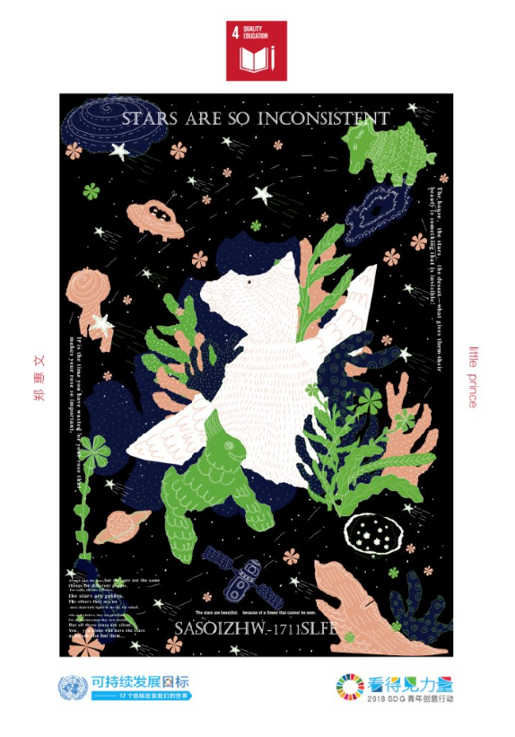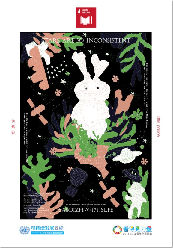 在2018年,項(xiàng)目以征集“SDG青年創(chuàng)意行動(dòng)”的方式,在近3個(gè)多月的征集時(shí)間里,共收到了來(lái)自5個(gè)國(guó)家和地區(qū)的79所大學(xué)的師生以及32家機(jī)構(gòu)/獨(dú)立設(shè)計(jì)師參與投稿的1062件(套)作品,作品類(lèi)型也不再只是平面設(shè)計(jì),包括數(shù)字新媒體、建筑設(shè)計(jì)以及品牌策劃、交互設(shè)計(jì)軟件、網(wǎng)站搭建等多種表現(xiàn)形式的作品均。經(jīng)知名設(shè)計(jì)師張達(dá)利、黑一烊、宋博淵、鄧遠(yuǎn)健和社會(huì)創(chuàng)新專(zhuān)家馮曉近10個(gè)小時(shí)的三輪現(xiàn)場(chǎng)評(píng)審,共有1件(套)作品獲得“特別大獎(jiǎng)”,10件(套)作品獲得“最佳獎(jiǎng)”,101件(套)作品獲得“優(yōu)異獎(jiǎng)”。在評(píng)選和公示期之后,獲獎(jiǎng)名單已于12月初正式發(fā)布,系列活動(dòng)創(chuàng)意與可持續(xù)發(fā)展論壇和面向全球招募的獲獎(jiǎng)作品聯(lián)合策展計(jì)劃也即將開(kāi)啟。