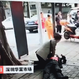 一名過路女子和一名男子接力為他實施心肺復蘇,直到急救人員趕來。