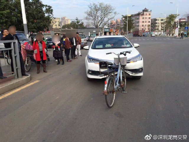 場面略顯尷尬!深圳一單車撞扁了轎車車頭,交警:這是真的!