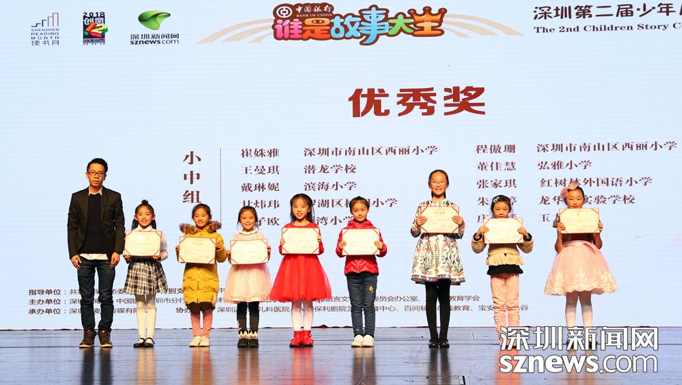 活動(dòng)期間,大賽主辦方還為參加此次活動(dòng)的學(xué)校、老師和小選手們頒發(fā)了最佳組織獎(jiǎng)、優(yōu)秀指導(dǎo)老師、優(yōu)秀獎(jiǎng)等獎(jiǎng)項(xiàng),從校園賽區(qū)、寶安分賽區(qū)、羅湖分賽區(qū)、中行專場(chǎng)、深圳新聞網(wǎng)線上海選晉級(jí)到深圳市復(fù)賽的每一位選手都獲得了參賽證明。一等獎(jiǎng)獲得者彭妙琪在采訪中表示,“很榮幸獲得‘故事大王’稱號(hào),這個(gè)比賽不僅讓自己聽到了更多的故事,還能增長(zhǎng)見識(shí),讓我們知道自己的不足,相信明年會(huì)有更多的選手加入這個(gè)舞臺(tái)?!?/p>