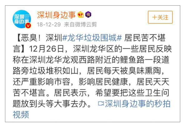 而據龍華區(qū)城管局工作人員介紹,近期龍華區(qū)出現垃圾無法及時清理問題,主要是因為轄區(qū)內沒有區(qū)管的垃圾處理場所。他表示,龍華區(qū)的生活垃圾一般運往下坪填埋場和老虎坑環(huán)境園進行無害化處理。