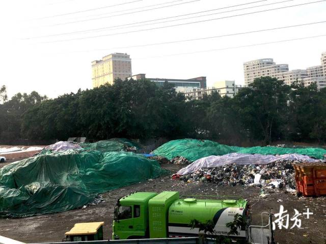 一位正在用帆布遮蓋垃圾的工作人員表示,這里堆放的垃圾全部來自大浪街道轄區(qū)內的生活垃圾。據他了解,他們公司每天會運送9車垃圾,一車可運來十多噸。