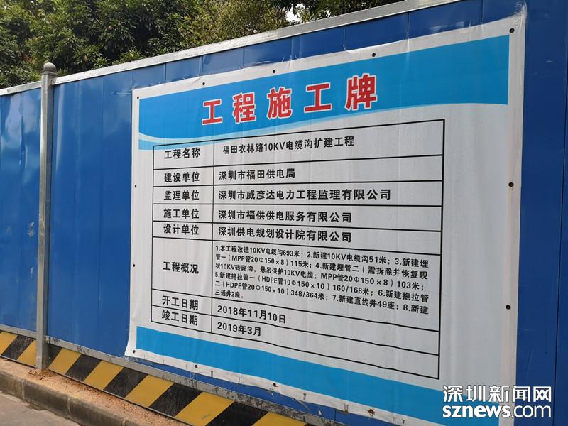 福田農林路道路工程施工牌顯示,正在進行電纜溝擴建工程