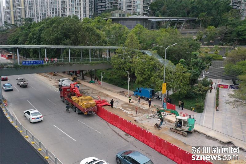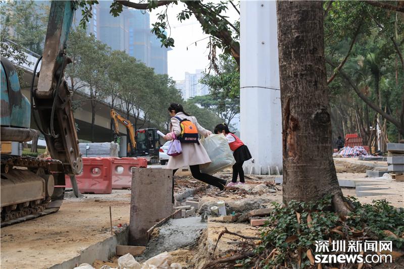 福田僑香路是人大代表楊勤調研的第二個點,從現(xiàn)場可以看到,目前僑香路人行道正在進行施工,不少大型機械正在作業(yè),發(fā)出陣陣轟鳴聲,來往行人只能繞道。