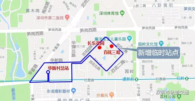 (2)新增華新村總站環(huán)線(xiàn)(單邊順時(shí)針運(yùn)行),線(xiàn)路單向途經(jīng)華富路、華新路、百花四路、百花三路、百花二路、百花五路、百花四路、華強(qiáng)北路、紅荔路。??咳A新村總站、華新村、市話(huà)大廈①、華新路、百花四路、長(zhǎng)樂(lè)花園、百花三路、百花二路、百花村、百花四路、華新村總站。(詳見(jiàn)圖6)