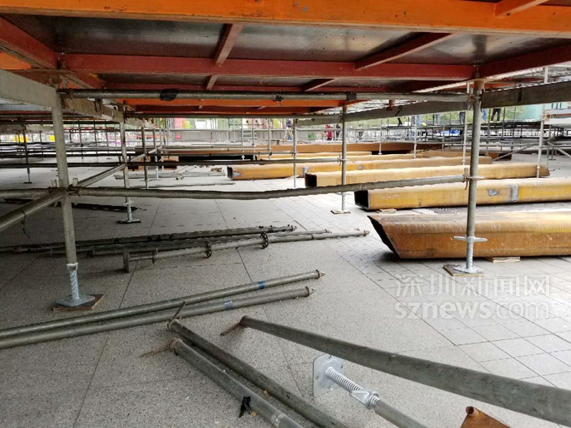 由于市民中心南廣場(chǎng)下為地下車庫(kù),為了安全起見(jiàn),舞臺(tái)以“遇河架橋”的思路進(jìn)行搭建(王啟文供圖)
