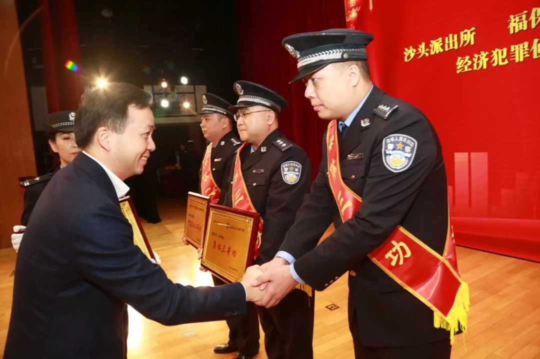 ▲副區(qū)長(zhǎng)、公安分局局長(zhǎng)段廷杰為嘉獎(jiǎng)集體頒獎(jiǎng)