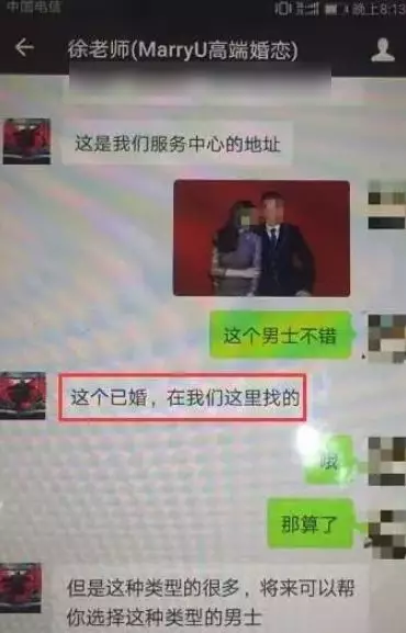不僅如此,當(dāng)朋友拿著陳先生的結(jié)婚照,詢問這名工作人員時,工作人員立馬表示,陳先生是在他們婚戀公司找到的對象。
