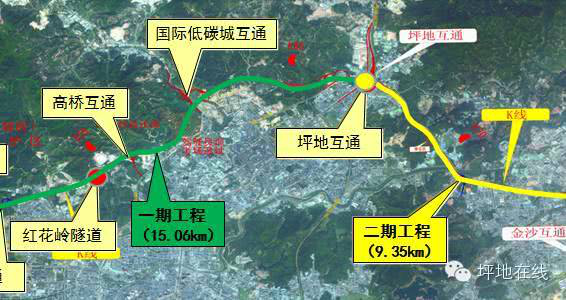 路線長約15.06公里,全線雙向六車道,并在坪地設(shè)坪地高橋、深圳國際低碳城、龍崗大道三個高速出入口。