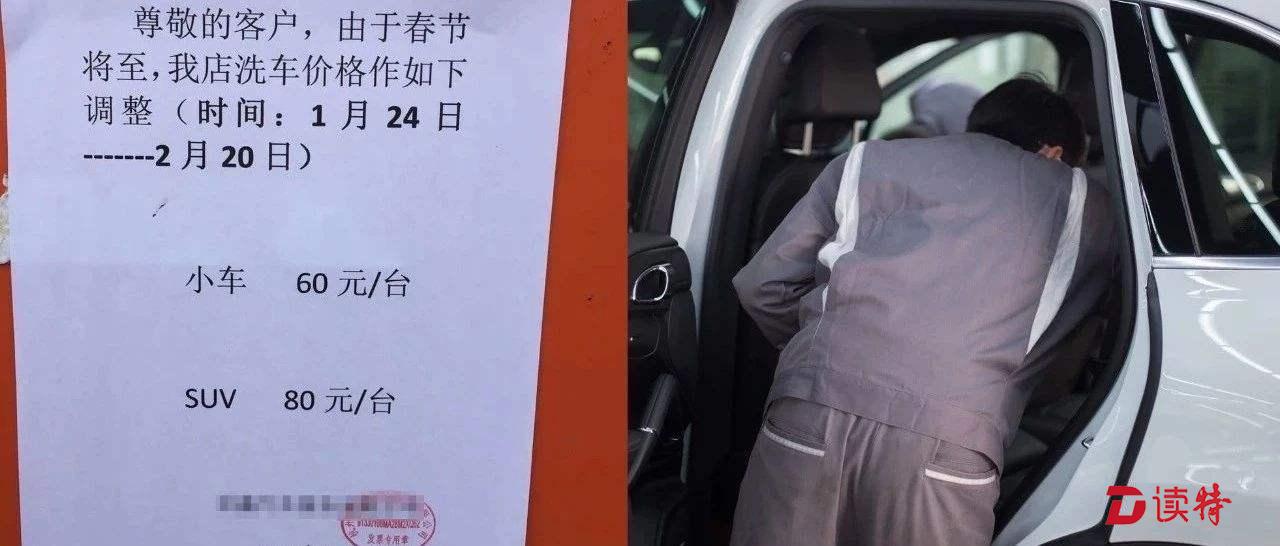 不少車主向記者表示,春節(jié)前夕洗車漲價(jià)可以理解,但如果漲幅過(guò)大,那就需要監(jiān)管部門(mén)監(jiān)管一下了。