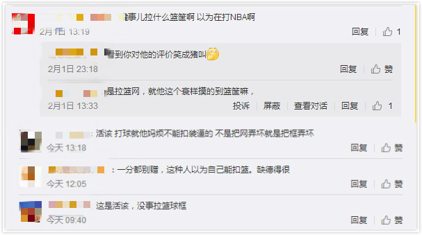 還有一些網(wǎng)友借機表達了自己對某類人的"墻裂"不滿?。]事兒拉什么球框啊,以為在打 NBA?。ⅲ⒒钤摚蚯蚓蜔┎荒芸圻€裝 X的"......