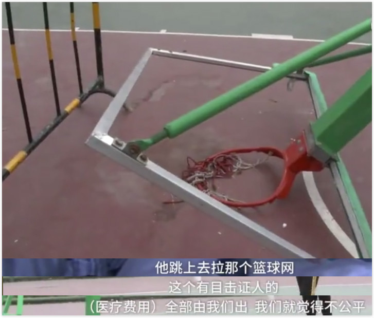 何先生認為造成這起事故的主要原因是施工方的疏忽,未將籃球架有效固定,因為倒塌的這個籃球架底座并沒有打鋼釘,填充物也僅有兩塊水泥磚,并不牢固。對此,球場施工方表示,工程驗收時"百分百 OK",愿意出于人道主義關懷給予傷者適當補償,但拒絕支付全部醫(yī)療費,因為"他跳上去拉那個籃球網(wǎng),有目擊者的"。