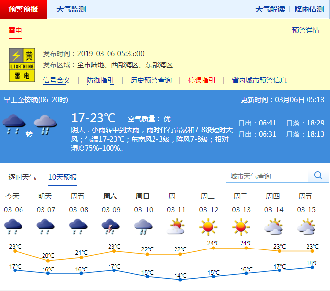 深圳新聞網(wǎng)2019年3月6日訊 3月5日,深圳正式宣布入汛,比往年入汛時(shí)間明顯提前,預(yù)計(jì)今年汛期雨量偏多,臺(tái)風(fēng)影響早。未來(lái)5天仍以降雨為主,可能伴有7到8級(jí)的短時(shí)陣風(fēng)和雷暴,提醒市民注意防范。