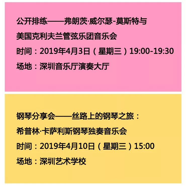 主體活動(dòng)星光燦爛,延展活動(dòng)眾星拱月,優(yōu)惠購(gòu)票、免費(fèi)招募、免費(fèi)參與靜等你來!參與方式可關(guān)注“深圳一帶一路音樂季”微信公共號(hào)。