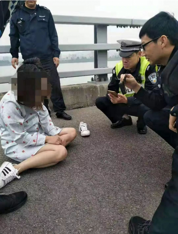 3月4日,深圳交警在沿江高速北行西鄉(xiāng)段救下了一名坐在高速公路護欄上準備跳橋的女子